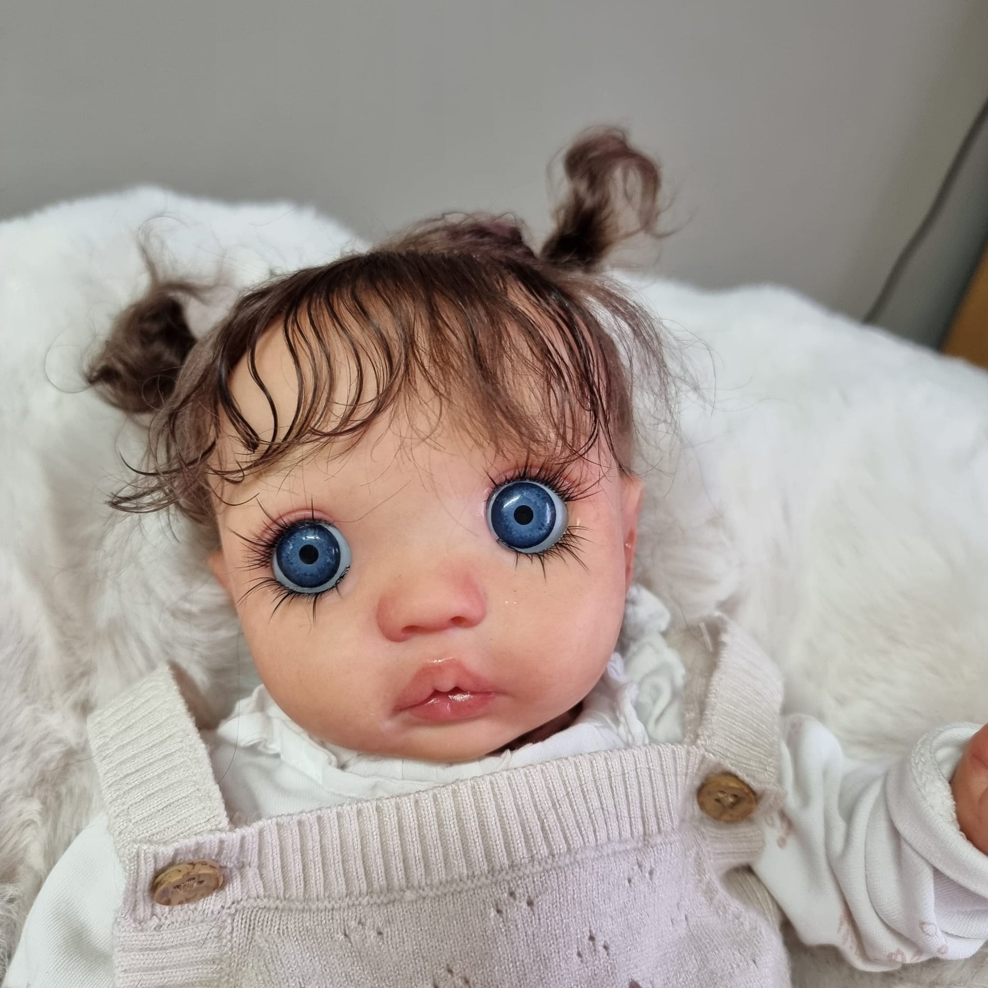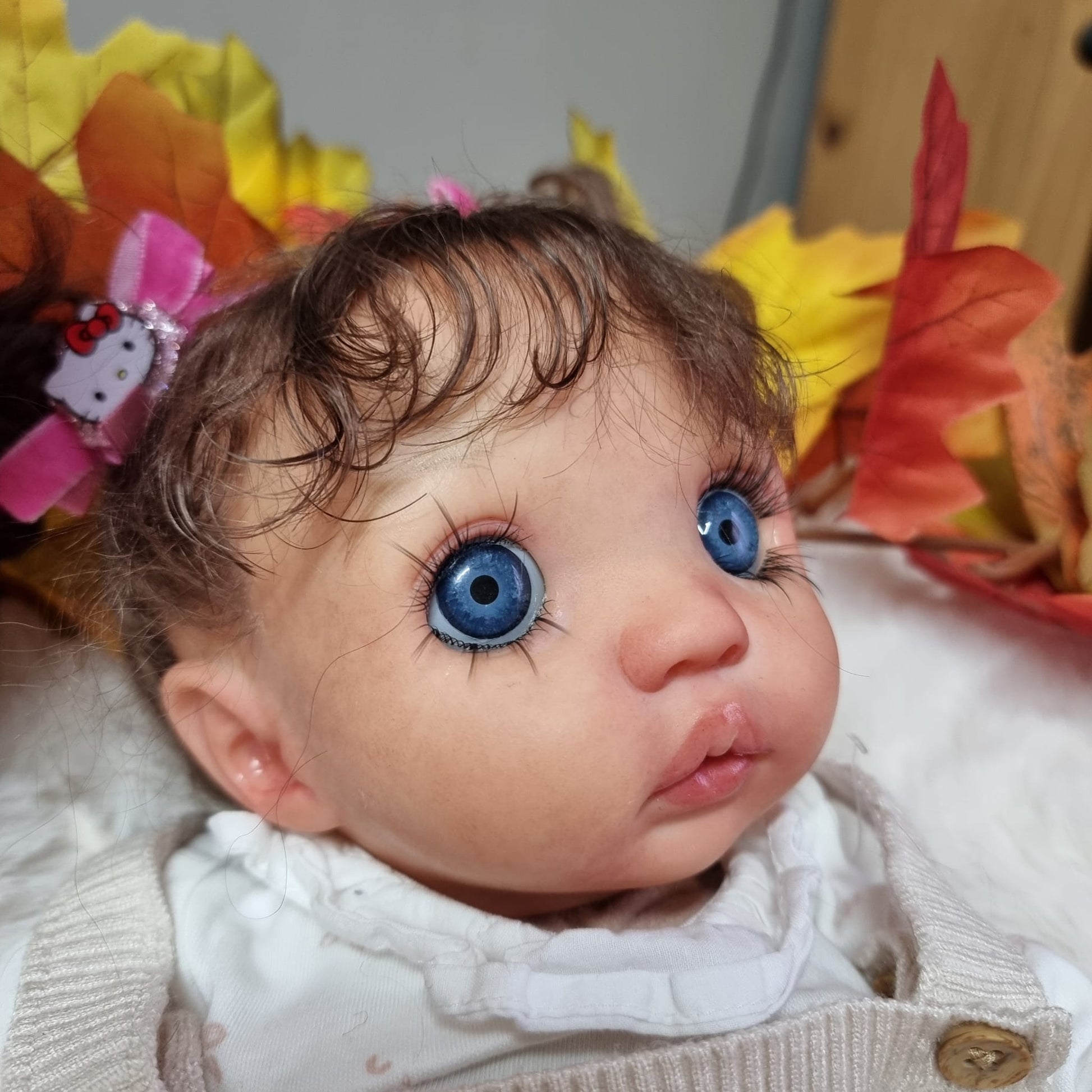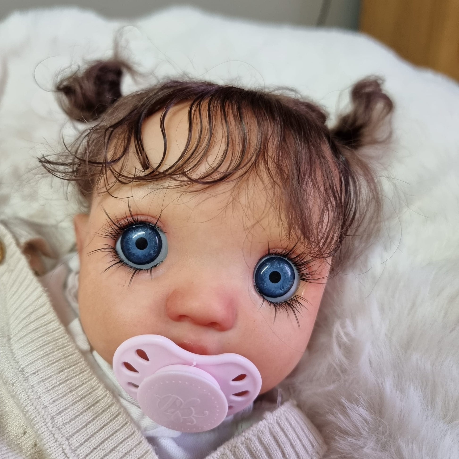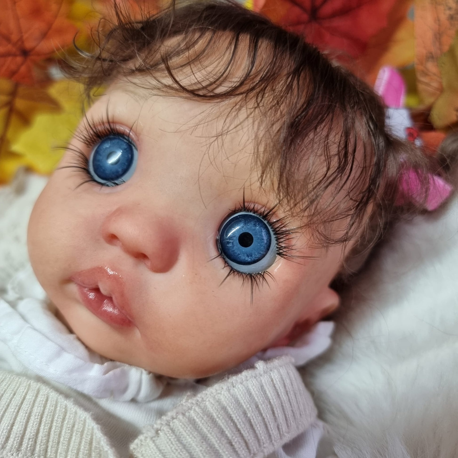 Peeka is a big eyed baby with glass blue eyes and stunning lashes