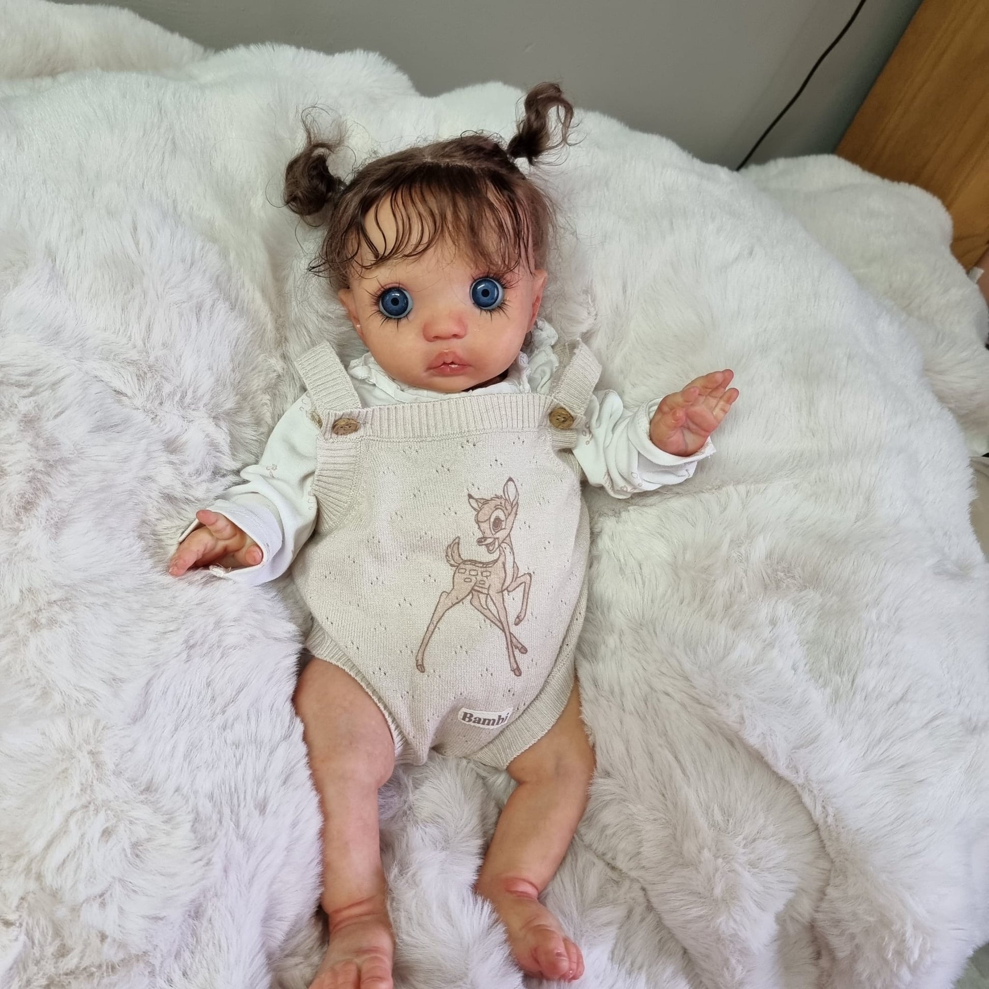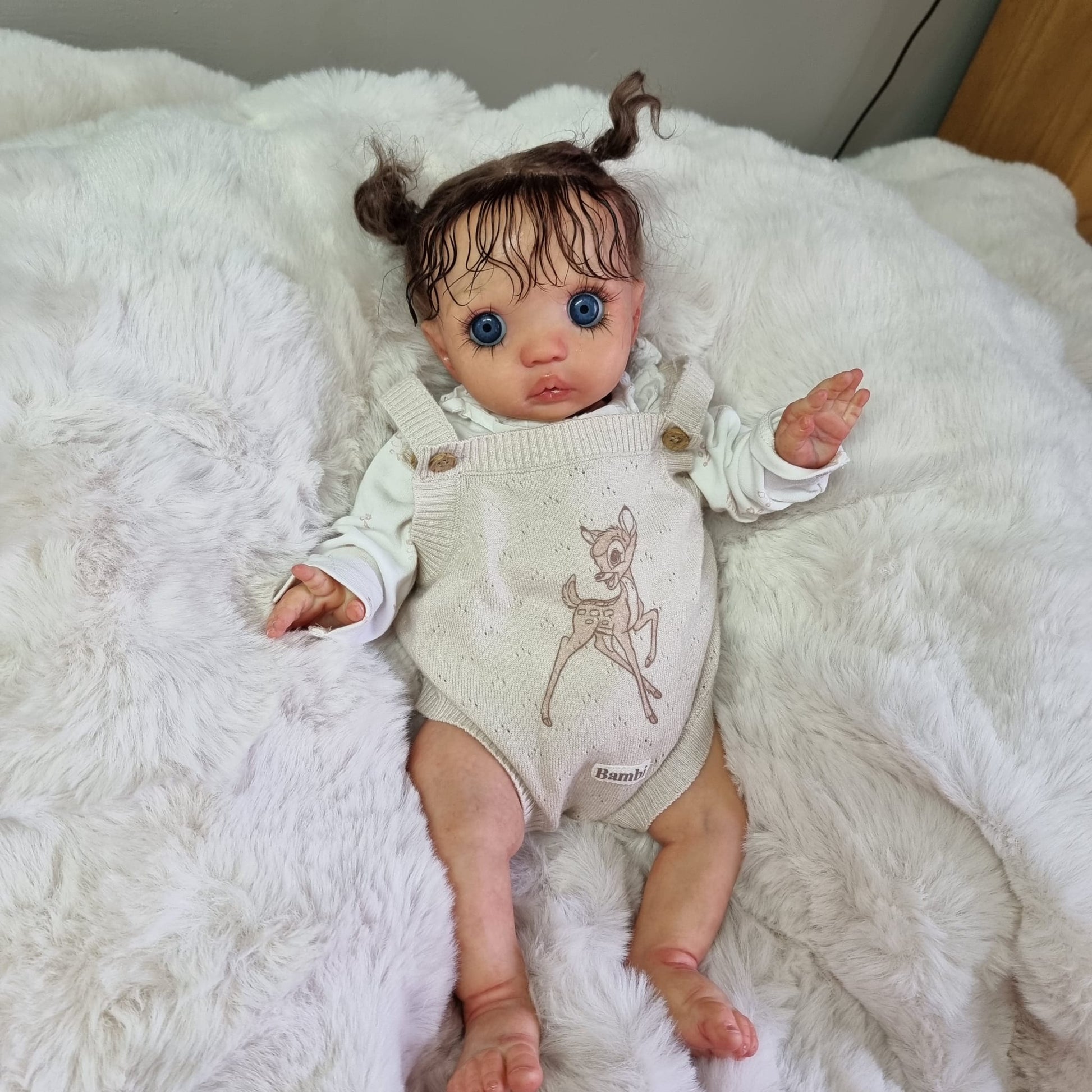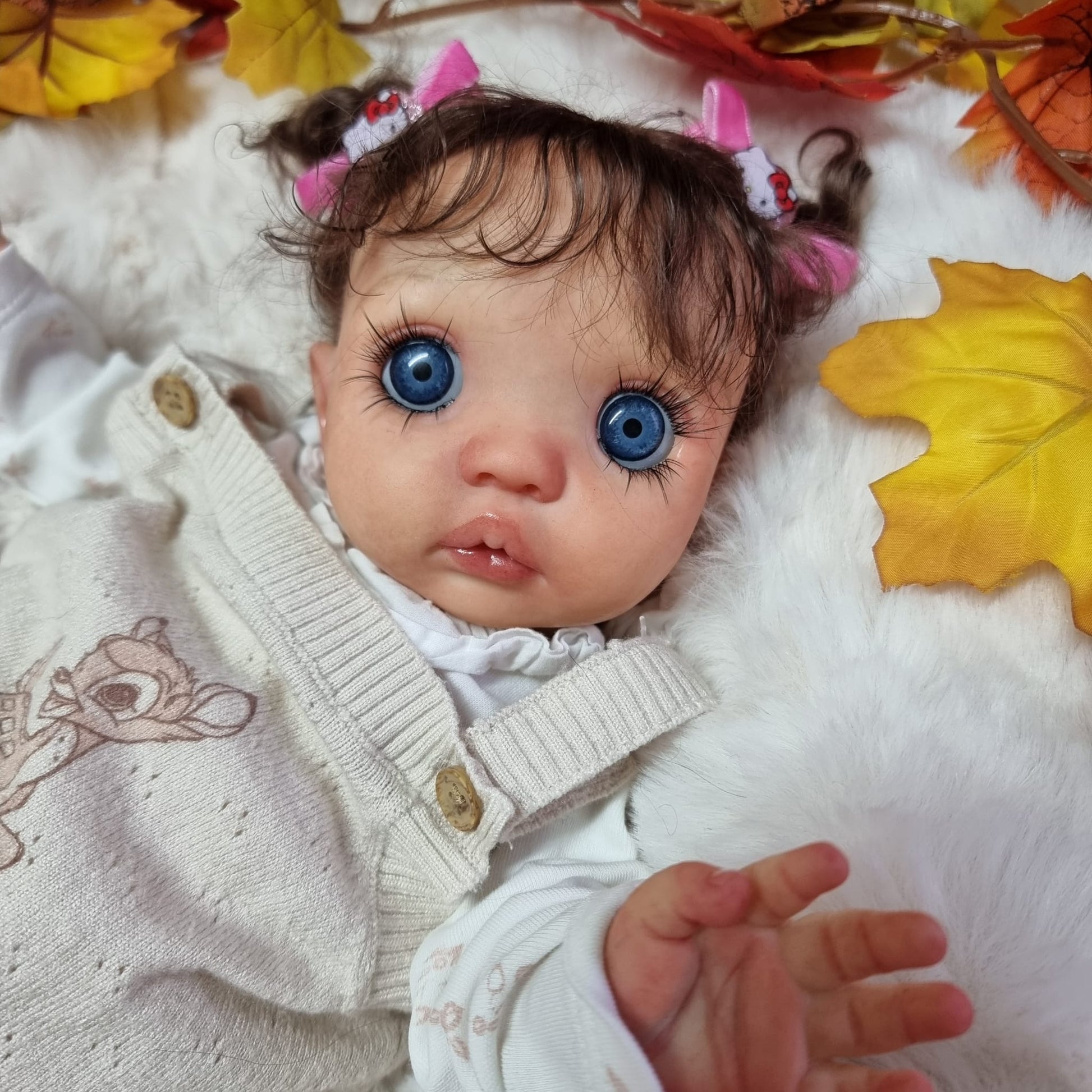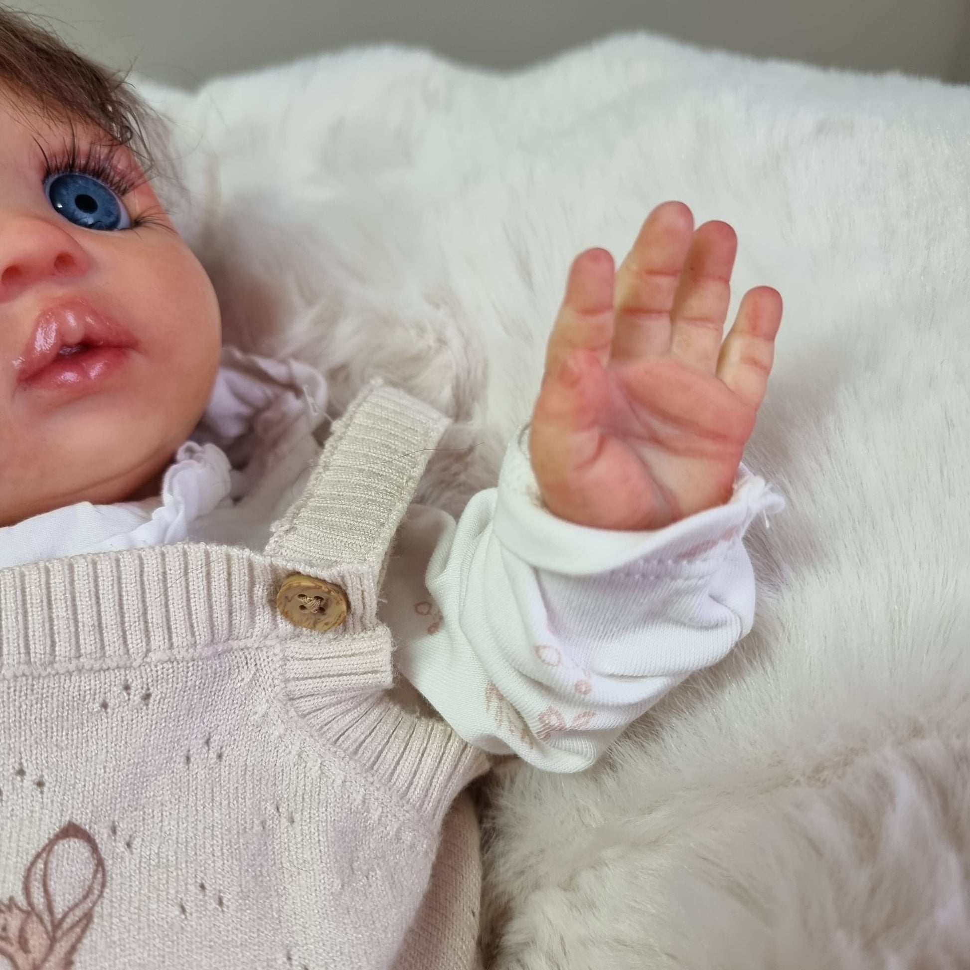 Peeka is a big eyed baby with glass blue eyes and stunning lashes