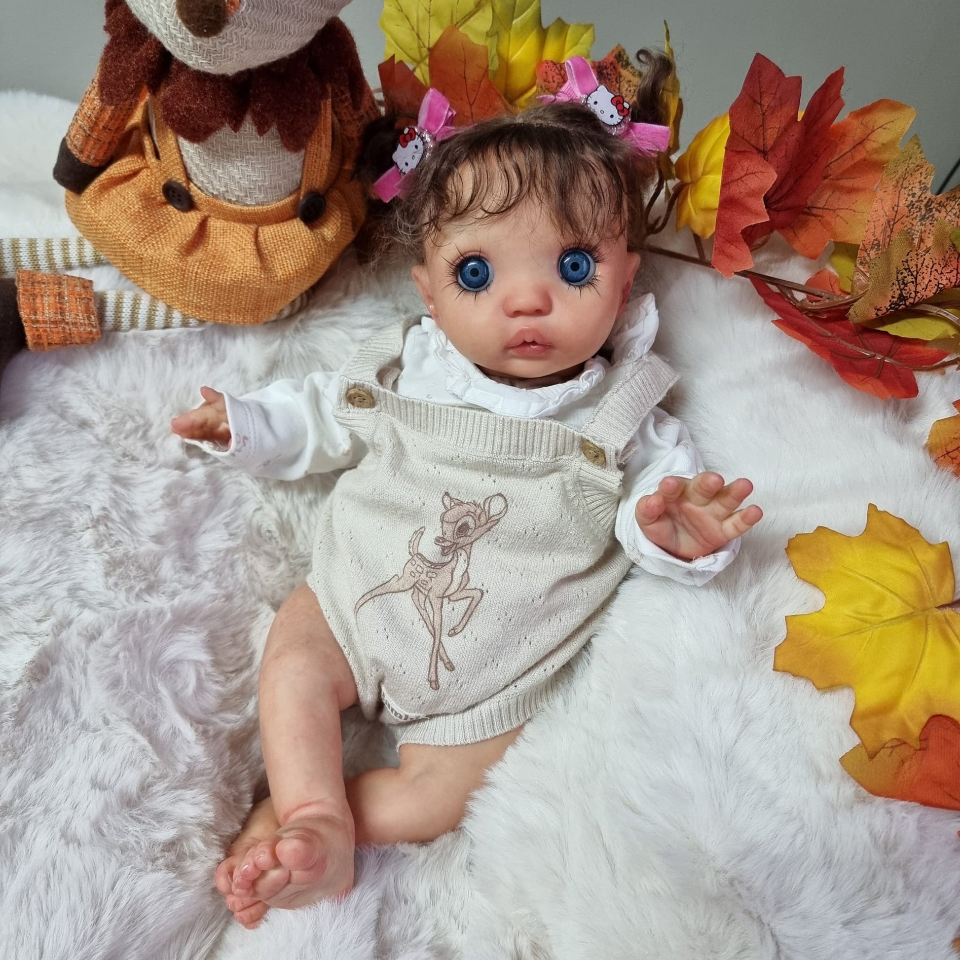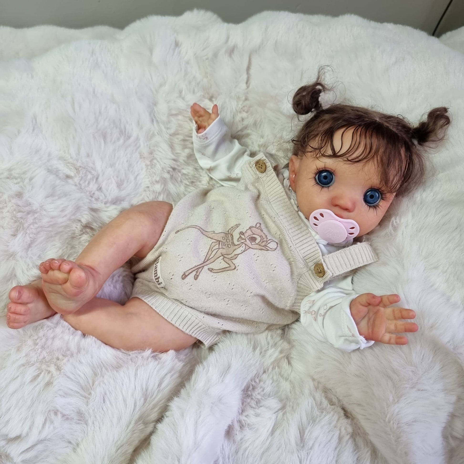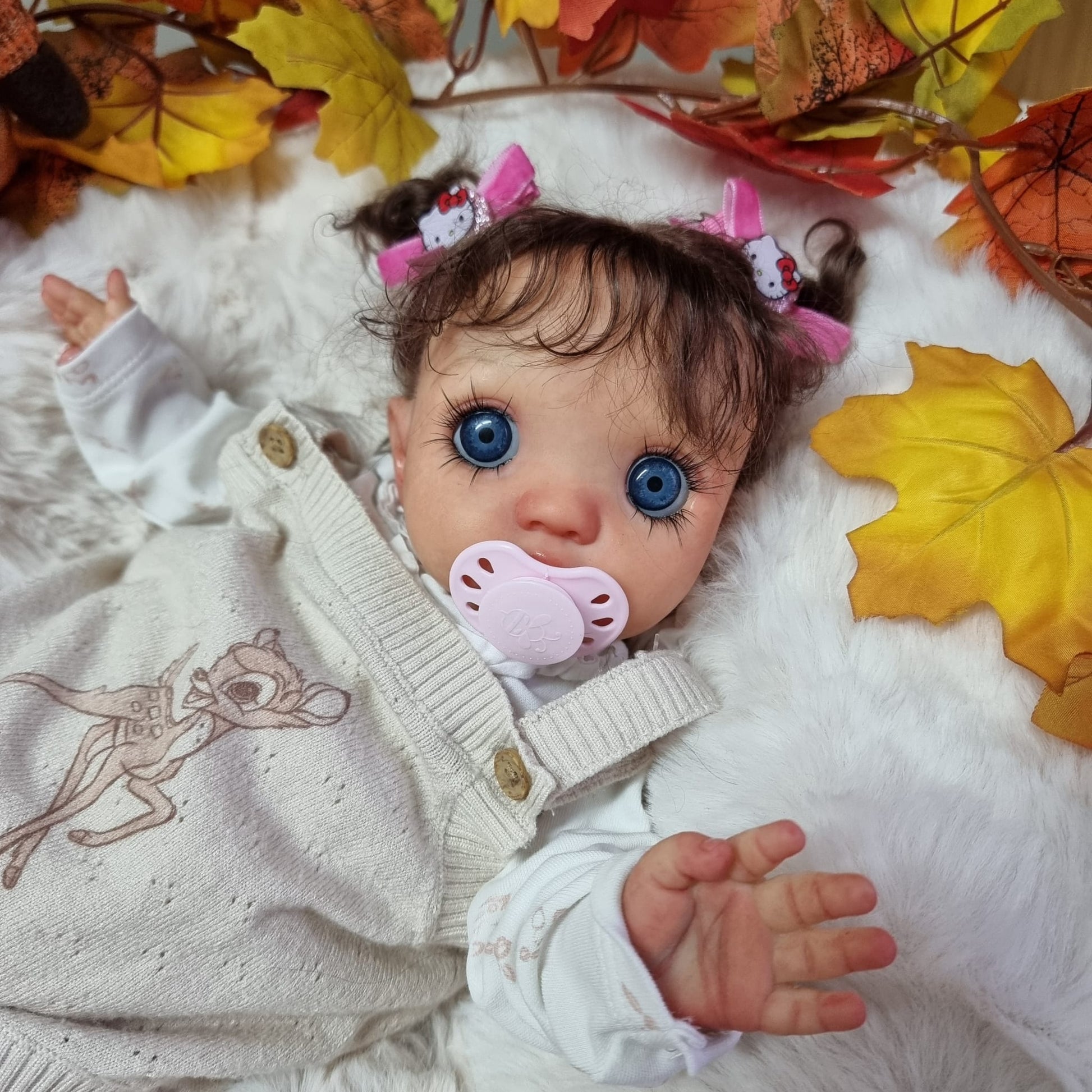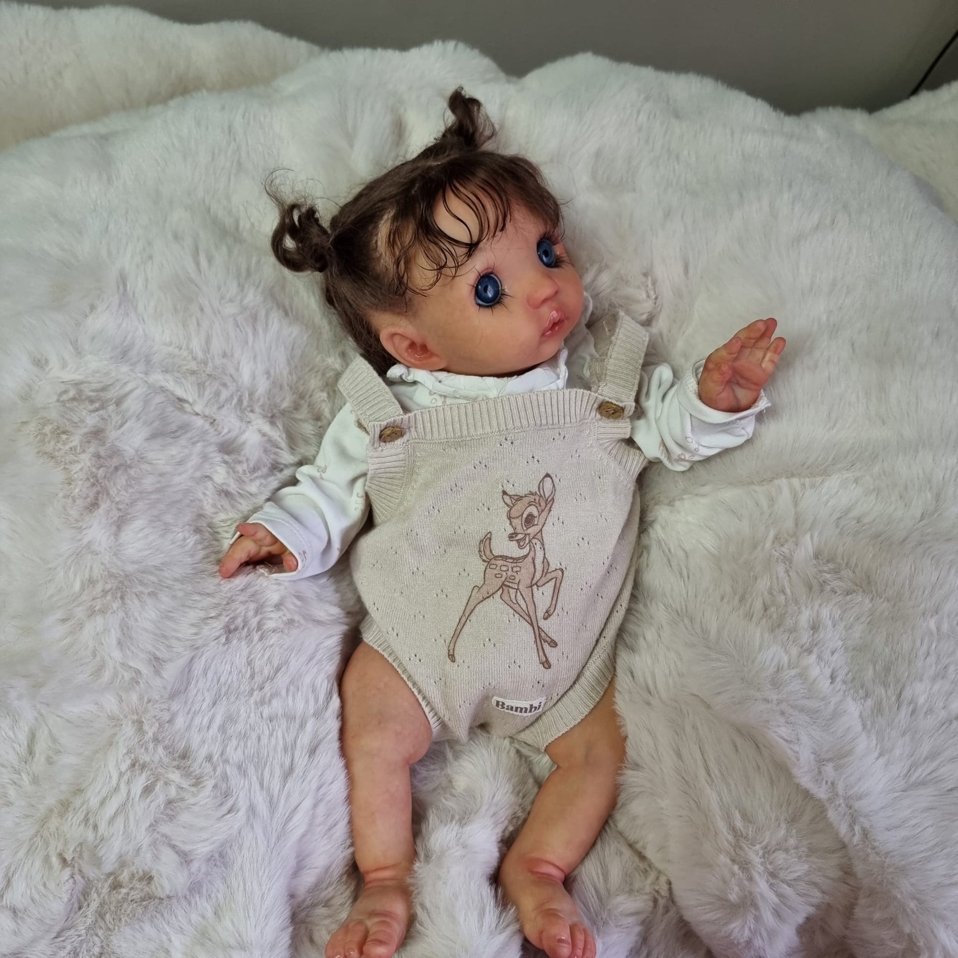 Peeka is a big eyed baby with glass blue eyes and stunning lashes