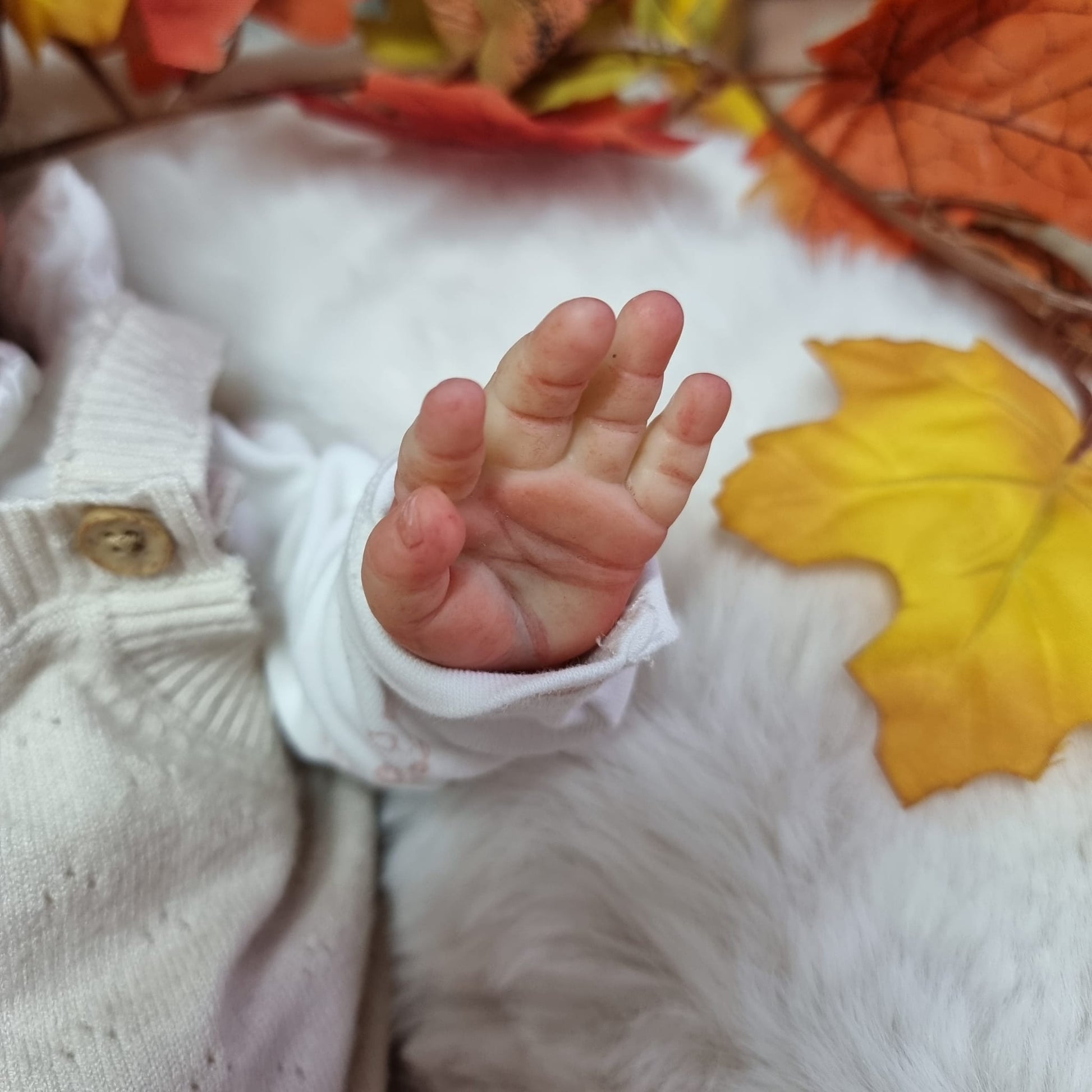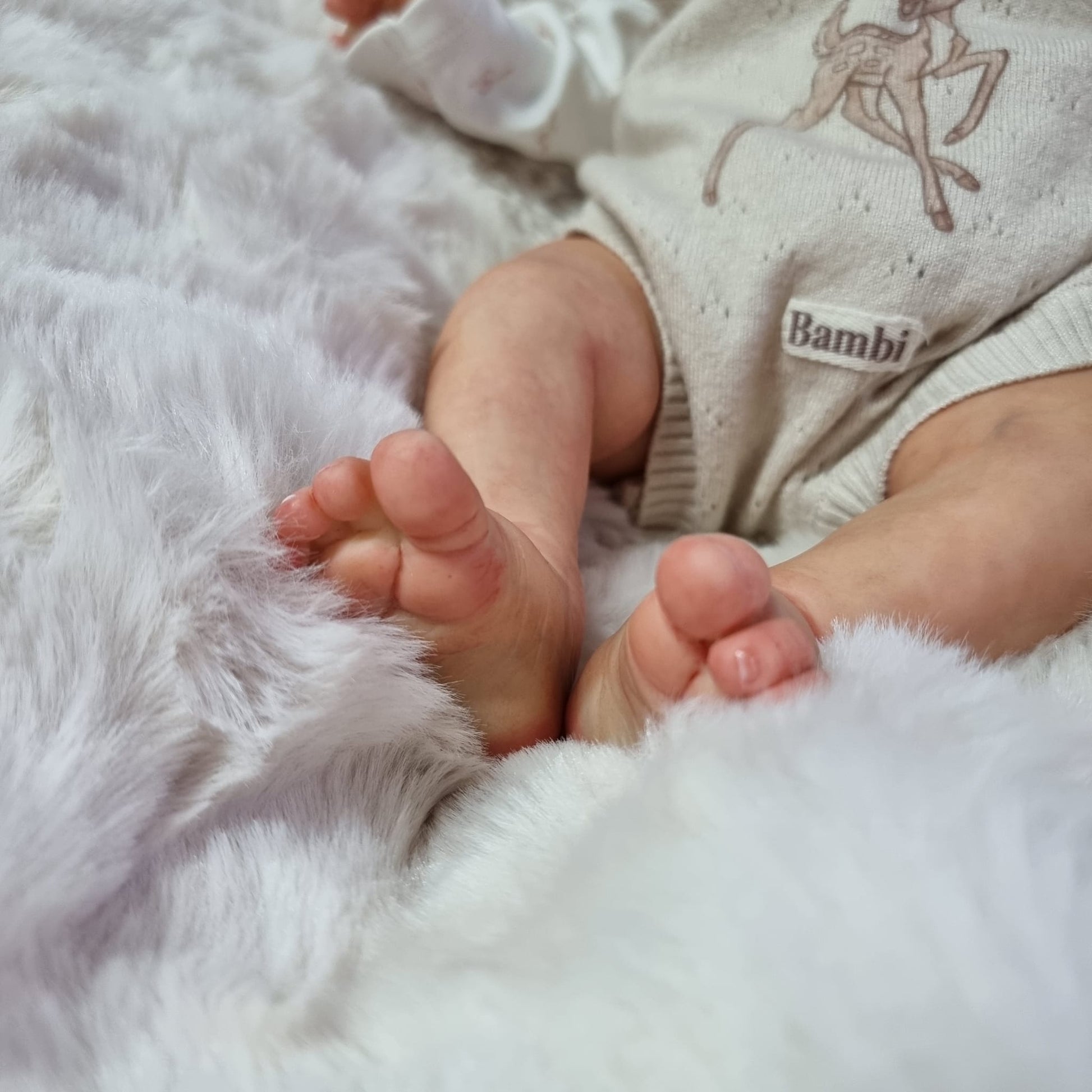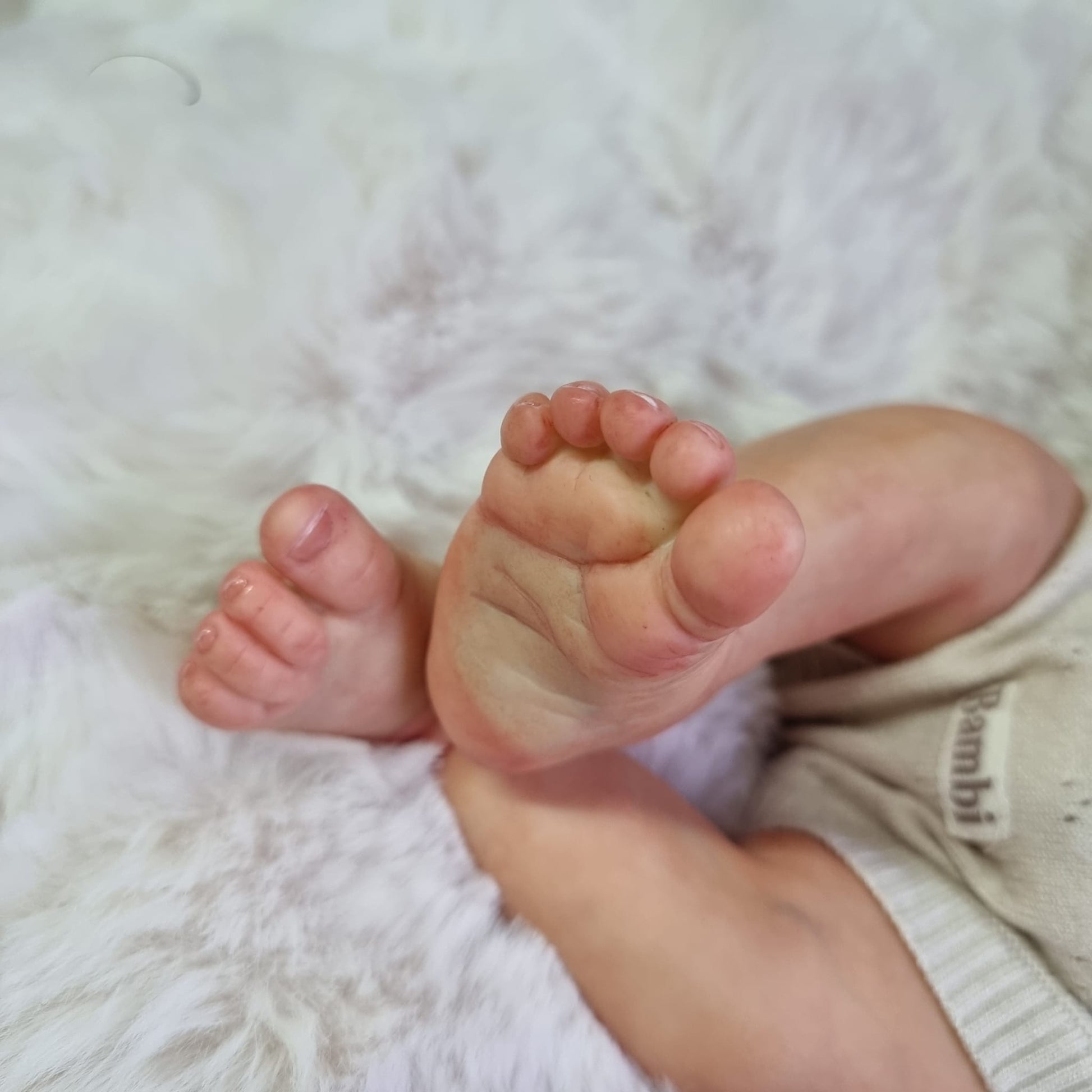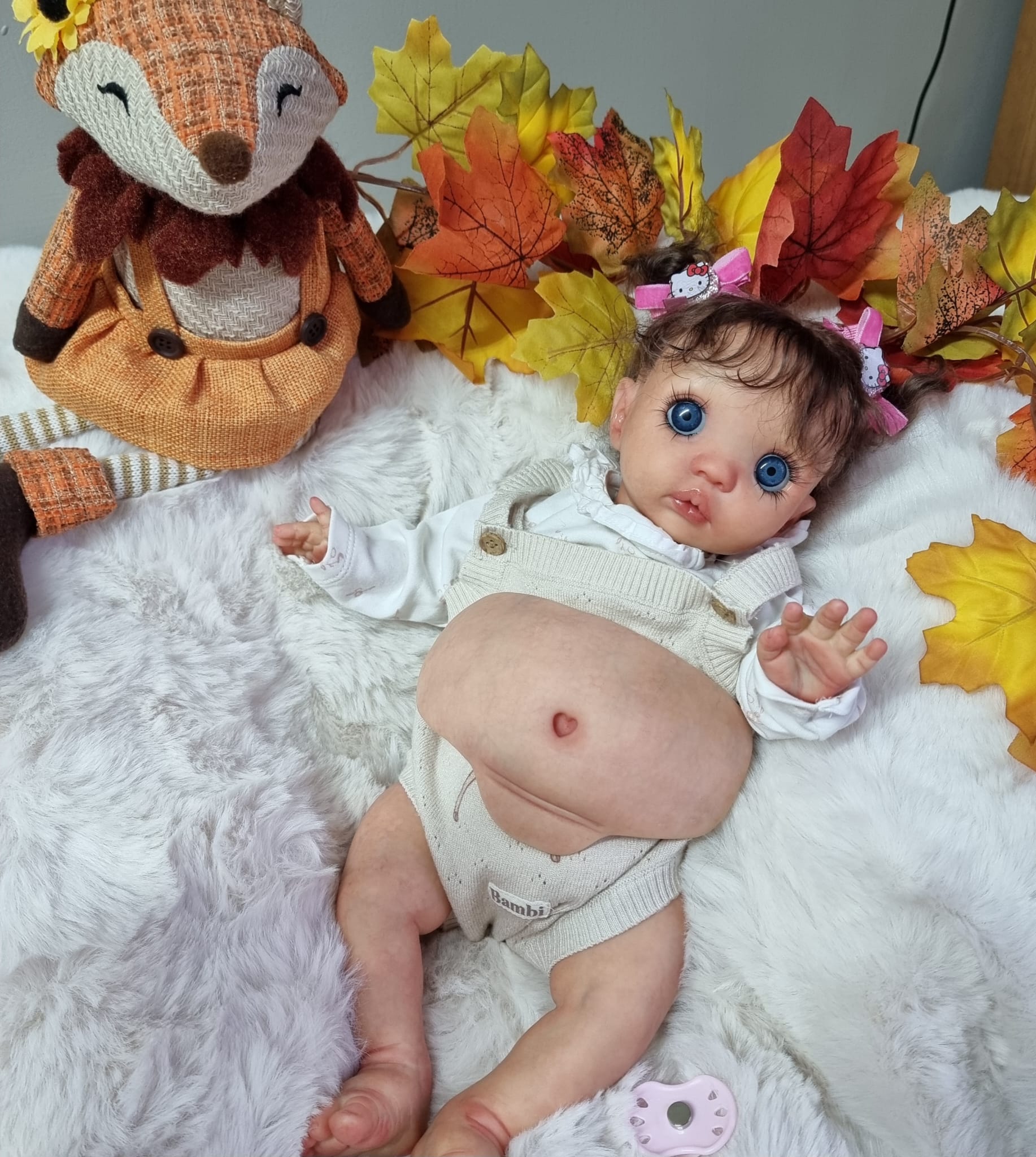 Peeka is a big eyed baby with glass blue eyes and stunning lashes