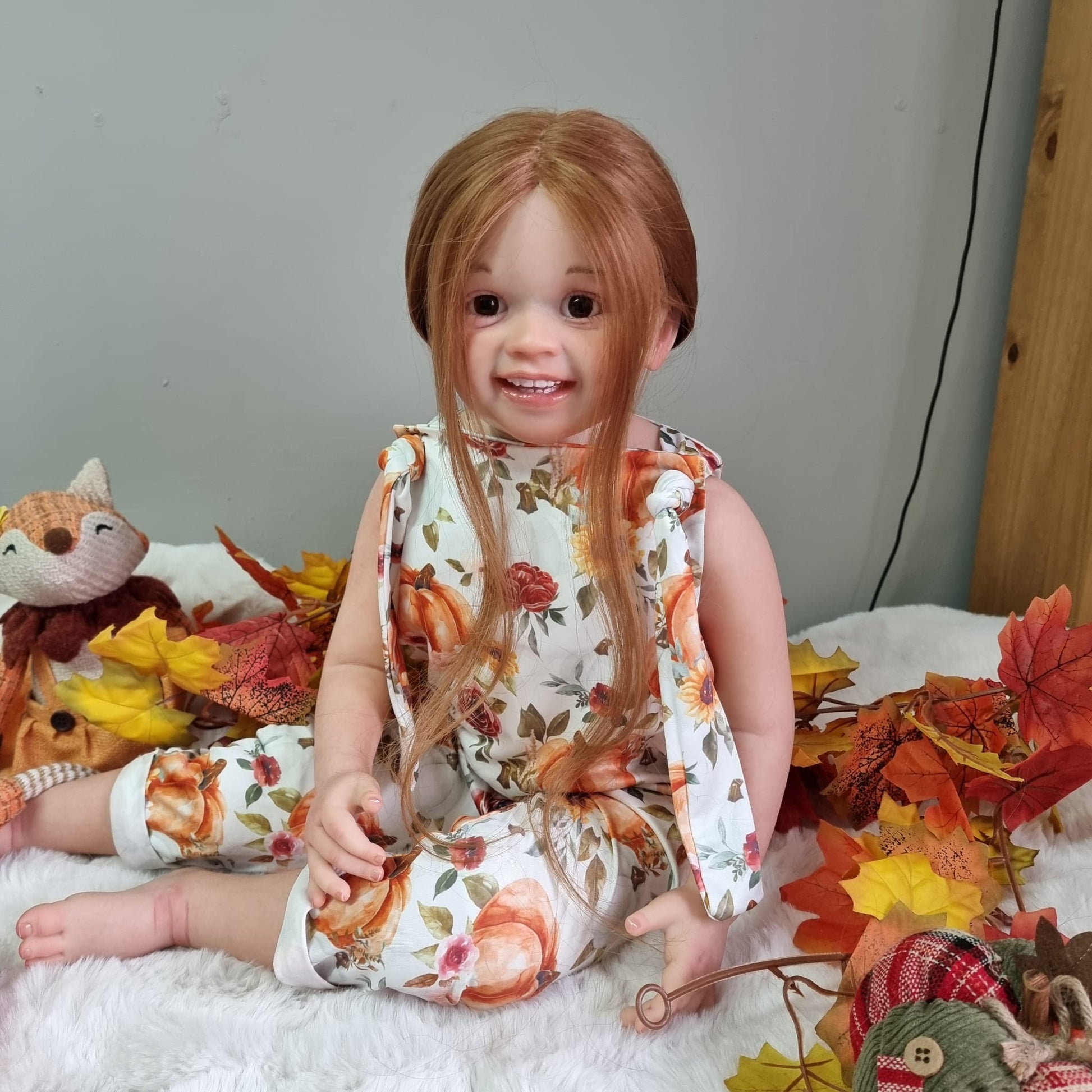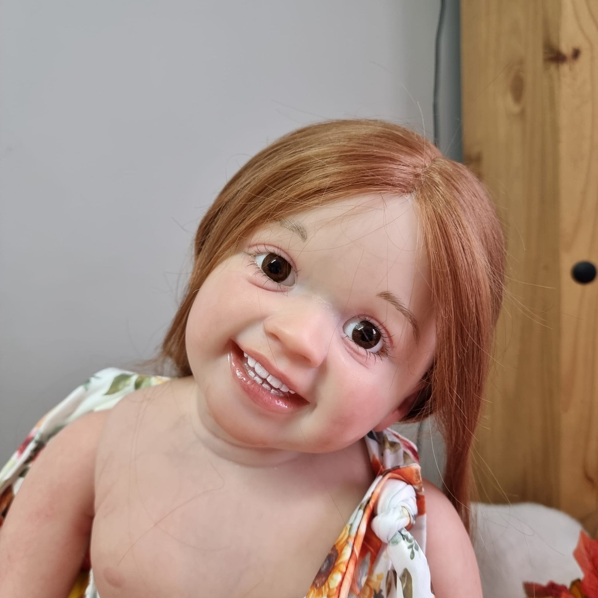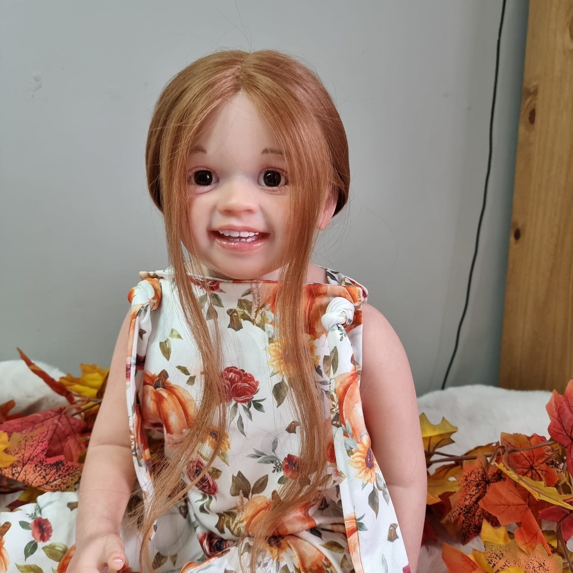 Shanti has very long hair it's been rooted it's a browny ginger colour